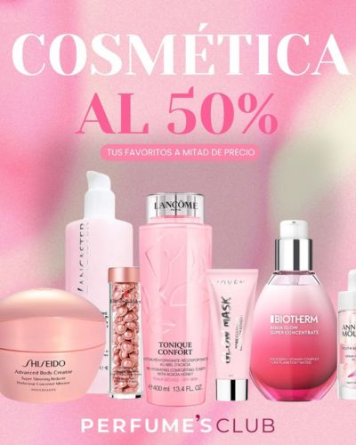 PerfumesClub cuenta con una sección de cosmética muy completa, que incluye cremas hidratantes, sérums antiedad, contornos de ojos, limpiadores, tónicos y tratamientos especializados. También dispone de productos corporales como exfoliantes, aceites, hidratantes y líneas anticelulíticas.